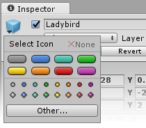 Whether you are assigning an icon to a GameObject or a Script, the pop-up Select Icon menu is the same: