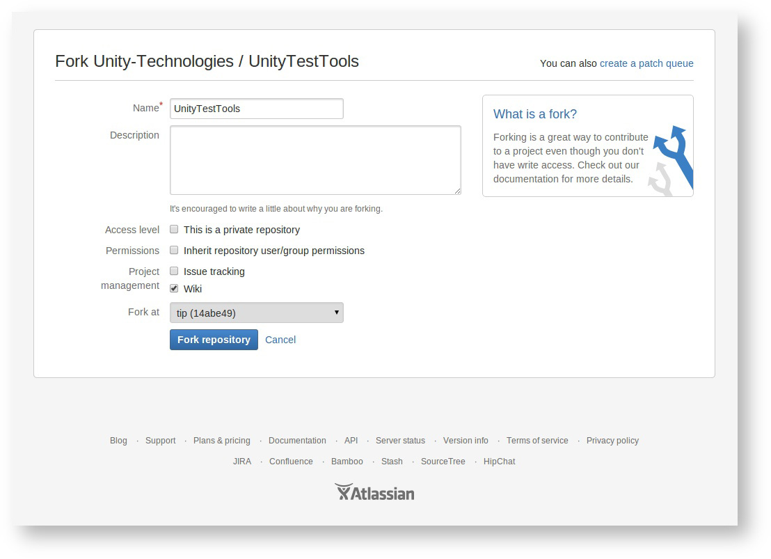 Click the Fork button and fill out the form you are redirected to, then click Fork repository: