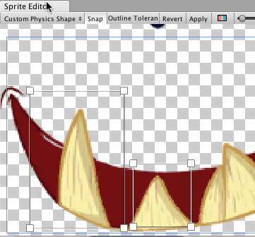 Click and drag over any empty space in the Sprite Editor window to create a new rectangular outline with 4 control points. Repeat this step to create additional outlines. You can refine each outline in the same way you would for a single Physics Shape outline.