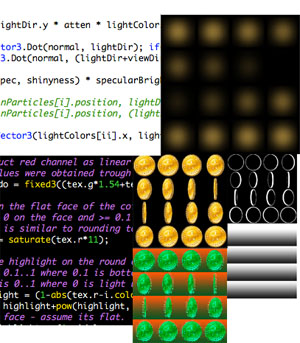 Imagine that this effect lives in the context of a 2D sidescrolling game with tons of coins that fall, bounce, and rotate. The coins are dynamically lit by point lights. We want to capture the light glinting off the coins to make our game more impressive.