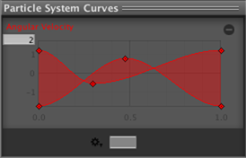 | Random Between Two Curves | The angular velocity can be set to change over the lifetime of the particle specified by a curve. In this mode, two curves are editable, and each particle will pick a random curve between the range of these two curves that you define (see Image B below). |