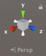 You can also toggle Perspective on and off. This changes the projection mode of the Scene view between Perspective and Orthographic (sometimes called ‘isometric’). To do this, click the cube in the centre of the Scene Gizmo, or the text below it. Orthographic view has no perspective, and is useful in combination with clicking one of the conical axis arms to get a front, top or side elevation.