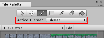hierarchy are automatically added to the dropdown menu. Only the selected Active Tilemap is affected by the Tile Palette painting tools.