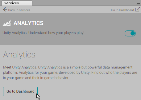To do this, in the Services window, select AnalyticsA data platform that provides analytics for your Unity game. More info