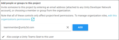 Note: You must tick Also assign a Unity Teams Seat to this user to enable the user to use Collaborate on your Project.