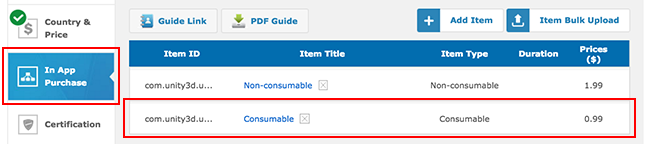 AddProduct() or AddProducts(). For debugging purposes, it’s best practise to use reverse-DNS for your Item ID. Click Check to ensure the Item ID is valid and unique, then populate Item Type and all other elements and click Save.