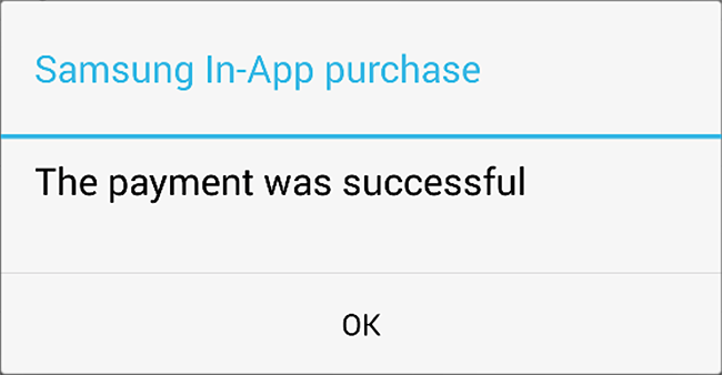 builder.Configure<ISamsungAppsConfiguration>().SetMode(SamsungAppsMode.AlwaysSucceed); // TESTING: auto-approves all transactions by Samsung.