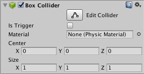 | Center | The position of the Collider in the object’s local space. |