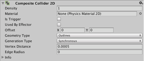 | Used by Effector | Check this box if you want the Composite Collider 2D to be used by an attached Effector 2D component. |