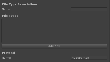 You can also enable your app to be the default app for a file type or protocol. You can set this information in Player settings. More settings are available in Package.appxmanifest -> Declarations.