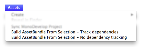Build AssetBundle From Selection - No dependency tracking. This is the opposite of the previous method and will only include the single asset you have selected.