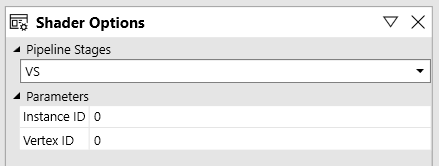 13. On the debug panel, use the Shader Options to select which shader stage to debug.