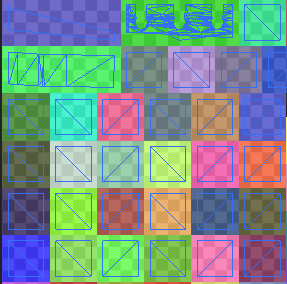 The wall sides still get a sensible resolution of 10x4 texels, but the small tiles gets a disproportionate 4x4 texels each. The reason that the minimum chart size is 4x4 is that we want to be able to stitch against the chart on all 4 sides and still get a lighting gradient across the chart.