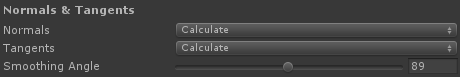 The Mesh Importer settings that relate to this are NormalsThe direction perpendicular to the surface of a mesh, represented by a Vector. Unity uses normals to determine object orientation and apply shading. More info