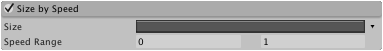Speed Range specifies the range of values that the X (width), Y (height) and Z (depth) shapes apply to. The Speed Range is only applied when the size is in one of the curve modes. Fast particles will scale using the values at the right end of the curve, while slower particles will use values from the left side of the curve. For example, if you specify a Speed Range between 10 and 100:
