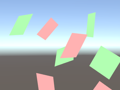The shader above uses the Cull state to turn off backface culling (by default back-facing triangles are not rendered at all). Here is the shader applied to a bunch of QuadA primitive object that resembles a plane but its edges are only one unit long, it uses only 4 vertices, and the surface is oriented in the XY plane of the local coordinate space. More info
