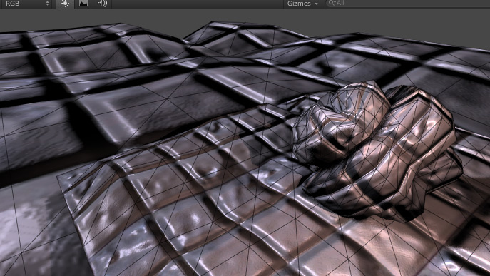 Purely distance based tessellation is effective only when triangle sizes are quite similar. In the image above, the GameObjects that have small triangles are tessellated too much, while GameObjects that have large triangles aren’t tessellated enough.