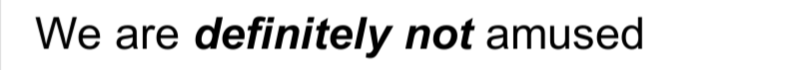 | b | Renders the text in boldface. | We are <b>not</b> amused. |