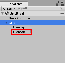 A Tilemap GameObject is then created and added to the Hierarchy as a child of the parent Grid GameObject, even if the sibling Tilemap GameObject was orignially selected.