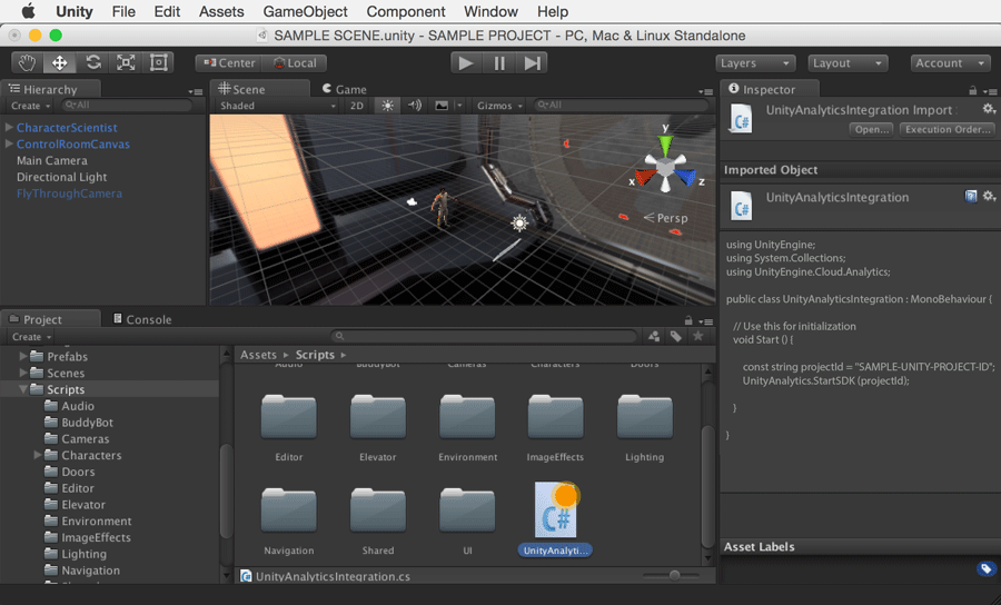 The UnityAnalyticsIntegration script can be attached to any GameObject in any Scene in your game to initialize the Unity AnalyticsAbbreviation of Unity Analytics