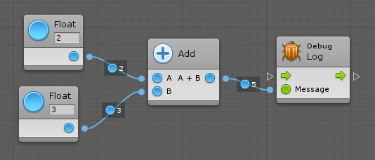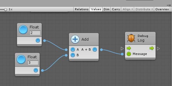 Relations are useful to understand what are the dependencies between each port of a unit. For example, in the above Add unit, you can see that if you want to get the result of A + B, you need to provide a value for A and B. Likewise, you can see that before invoking the Log unit, you should provide a value for its Message input port.