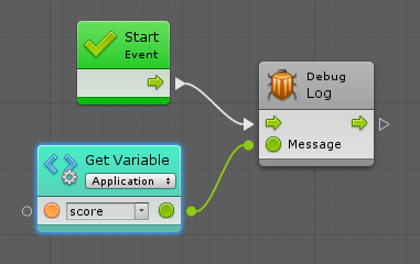 Because the Name of the variable is a standard value input port, you can connect it to any other port that returns a string. This means that you can refer to “dynamic variables”, that is, variables whose reference may change during play mode.