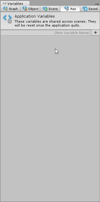 | Application Variables | Application variables persist even when the scene changes. They will be reset once the application quits. |