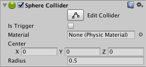 | Center | The position of the Collider in the object’s local space. |