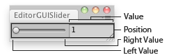 public static float Slider(Rect position, GUIContent label, float value, float leftValue, float rightValue);