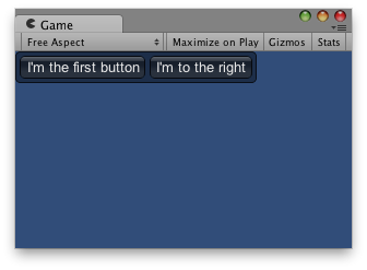 GUILayout.Button("I'm the first button"); GUILayout.Button("I'm to the right");