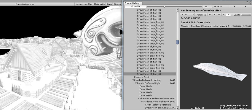 When you’ve done this, capture a frame of rendering, then step through the draw calls and other rendering events to see what’s going on. This is a very powerful approach, because these tools can provide you with a lot of information to really drill down.