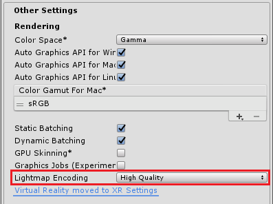 Note: When encoding is used, the values stored in the lightmaps (GPU texture memory) are always in Gamma Color Space.