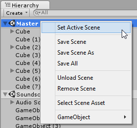 Set Active Scene This allows you to specify which scene new Game Objects are created/instantiated in. There must always be one scene marked as the active scene