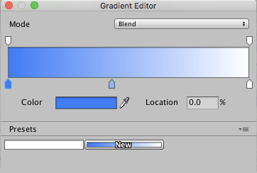 • Presets: Allows you to save Gradient settings. Click New to make the current set of values a Gradient preset.