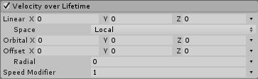 The Velocity over Lifetime module allows you to control the velocity of particles over their lifetime.