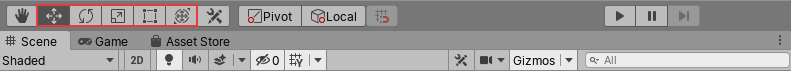 The Move, Rotate, Scale, Rect Transform and Transform Gizmos