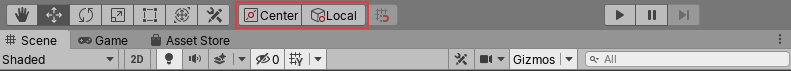 • Center positions the Gizmo at a center position based on the selected GameObjects.