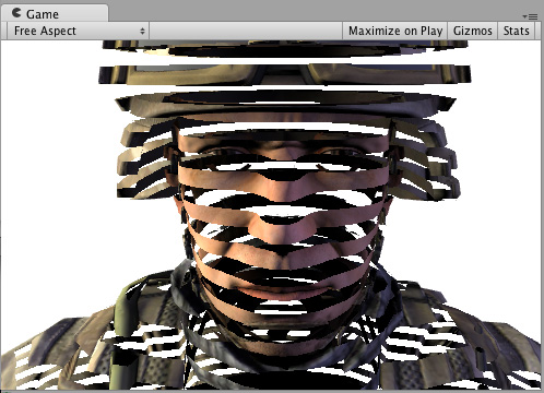 Here’s a Shader that “slices” the GameObject by discarding pixelsThe smallest unit in a computer image. Pixel size depends on your screen resolution. Pixel lighting is calculated at every screen pixel. More info