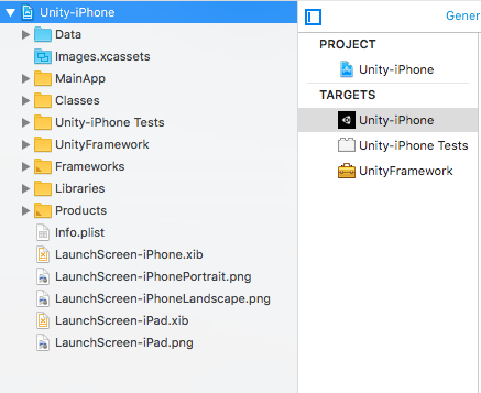 Every generated Unity iOS Xcode project has the following structure and targets: