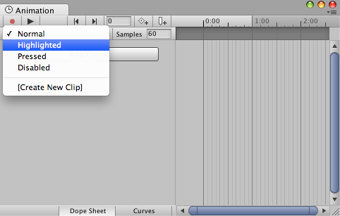 As an example, the width of the button in the Highlighted State could be changed by selecting the Highlighted state from the Animation Clip pop up menu and with the playhead at the start of the time line:
