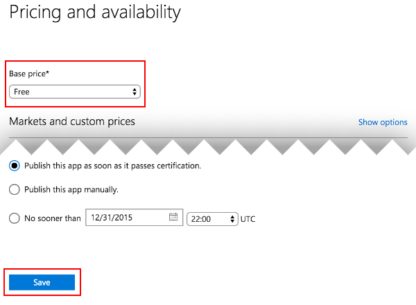 3. To test IAP with the Windows Store, the Windows Dev Center needs the published app. Click Pricing and availability and limit the app’s Store visibility so that it is only available to users who have the app’s direct link.
