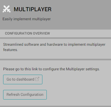 The Go To Dashboard button takes you to the web-based Services Dashboard, where you can set up the Multiplayer configuration for your project.