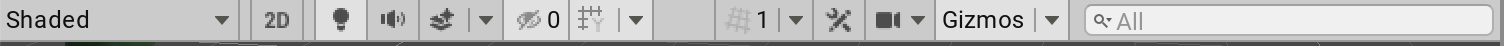 view control bar to choose various options for viewing the Scene and also to control whether lighting and audio are enabled. These controls only affect the Scene viewAn interactive view into the world you are creating. You use the Scene View to select and position scenery, characters, cameras, lights, and all other types of Game Object. More info