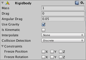 | - Freeze Rotation | Stops the Rigidbody rotating around the local X, Y and Z axes selectively. |