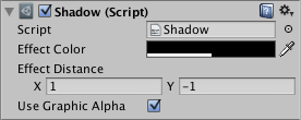 The Shadow component adds a simple outline effect to graphic components such as Text or Image. It must be on the same GameObjectThe fundamental object in Unity scenes, which can represent characters, props, scenery, cameras, waypoints, and more. A GameObject’s functionality is defined by the Components attached to it. More info
