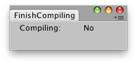 public class isCompilingExample : EditorWindow { [MenuItem("Examples/Is compiling?")] static void Init() { EditorWindow window = GetWindowWithRect(typeof(isCompilingExample), new Rect(0, 0, 200, 200)); window.Show(); }