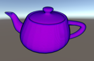 Teapot volume rendered with a gradient that has a transparent black outline.